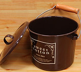 チョコレートブラウンがとってもかわいいホーローのふた付バケツ。持ち運びにちょうどいいサイズで、持ち手は取り外しが可能です。