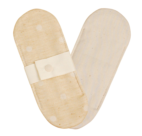 オーガニックコットンのやわらかな風合いの軽い日・おりもの用の布ナプキンです。