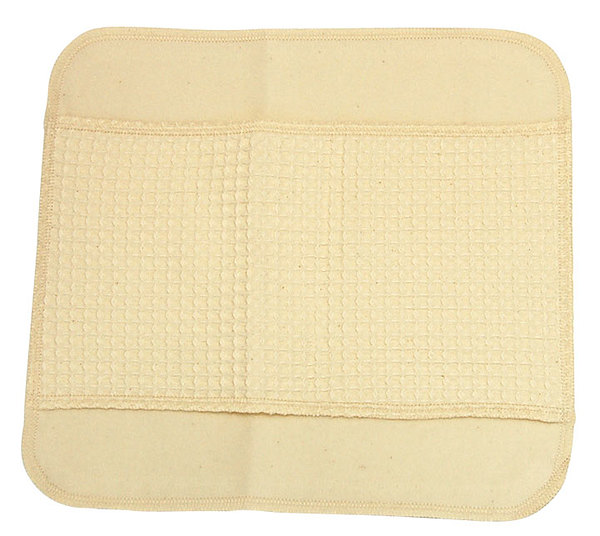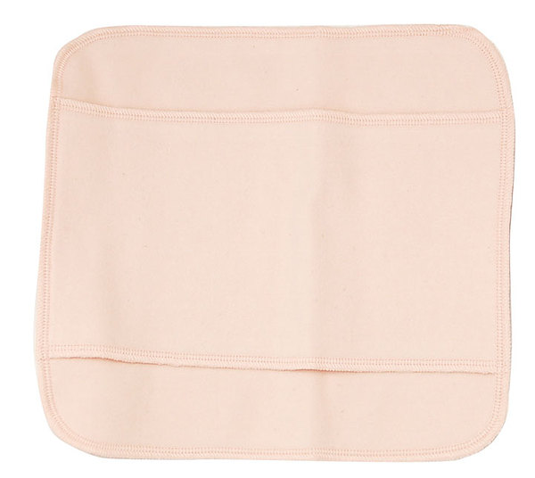 ネル生地とピマスムースオーガニックコットンの面でできています。ネル側の真ん中は三重になっていますが、両端しか縫い合わせていないので、ホルダーを通すなど色々な使い方ができます。お色は生成り(無漂白・無蛍光)、ピンク、オレンジの3色です。