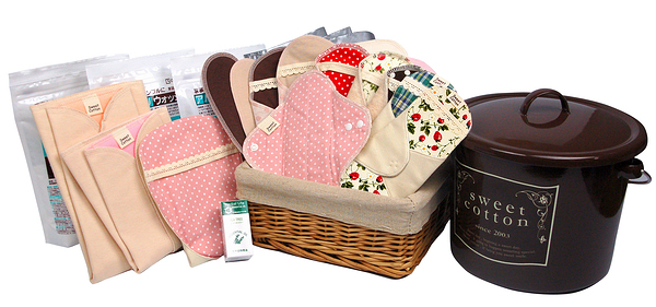| 布ナプキン 充実セット SweetCotton (17点セット) やさしい肌触りと色味のSweetCotton充実セット。一体型と交換型がミックスされていますので量や体調に合わせて使いやすく、多い日や夜用にも対応可能です。
